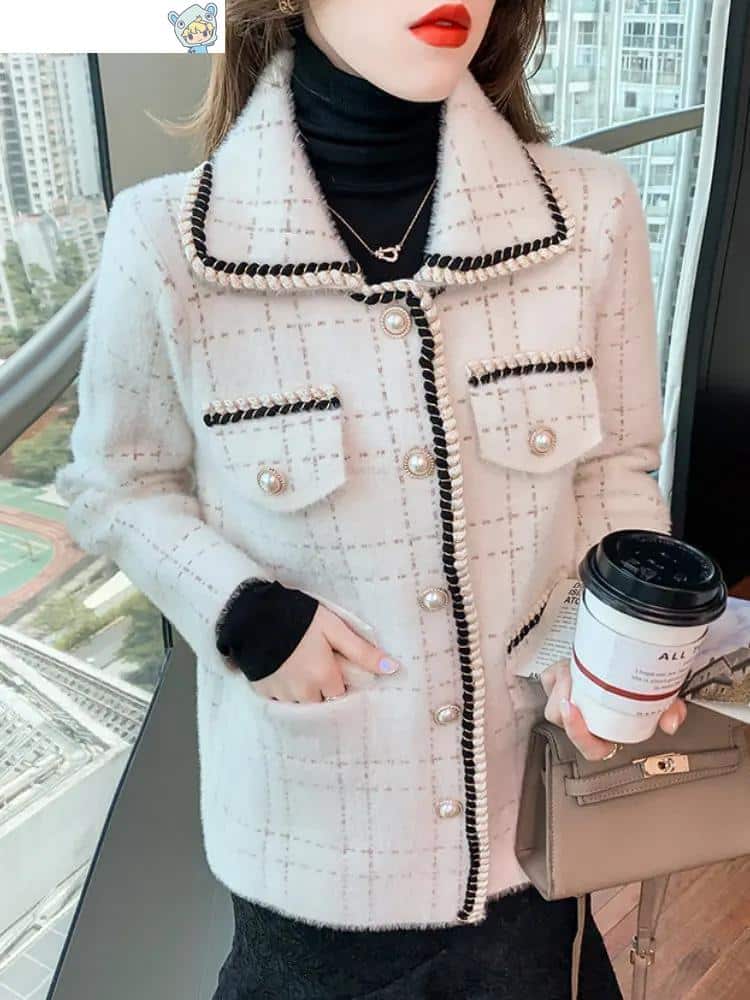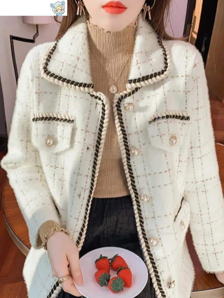 Ein eleganter und luxuriöser Mink-Kaschmir-Strickmantel aus Frankreich für den Herbst und Winter – perfekt für lässige Outfits.